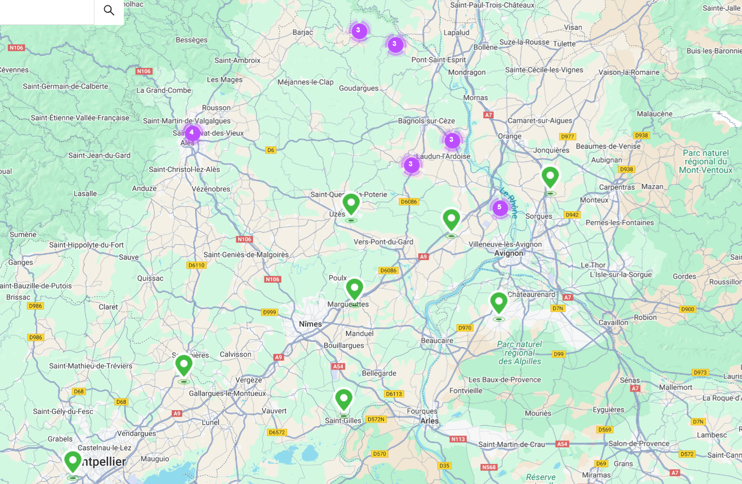 Installations photovoltaïques vendues par ECO DISTRIB ( points verts et violets)
